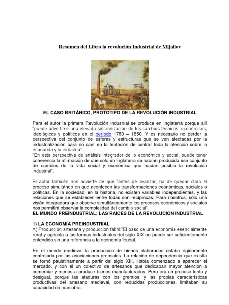 Resumen del Libro la revolución Industrial de Mijailov 😈