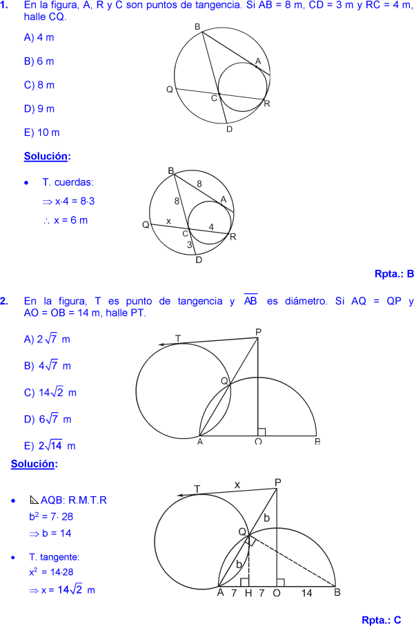 RELACIONES MÉTRICAS EN LA CIRCUNFERENCIA PROBLEMAS RESUELTOS DE ... 😈