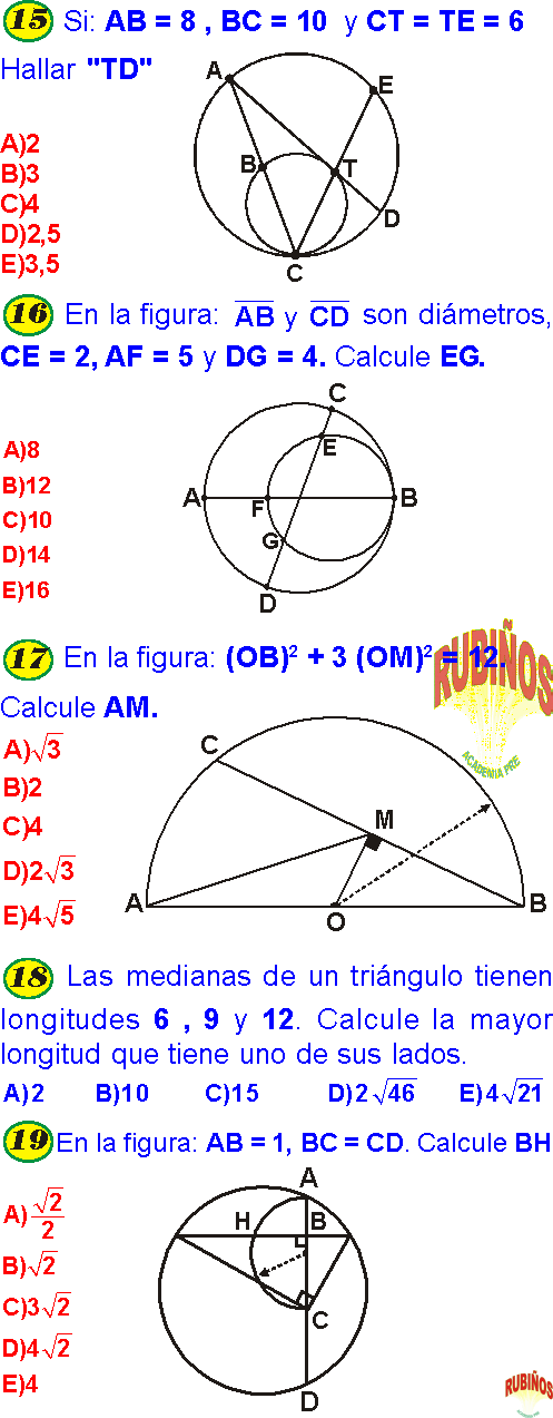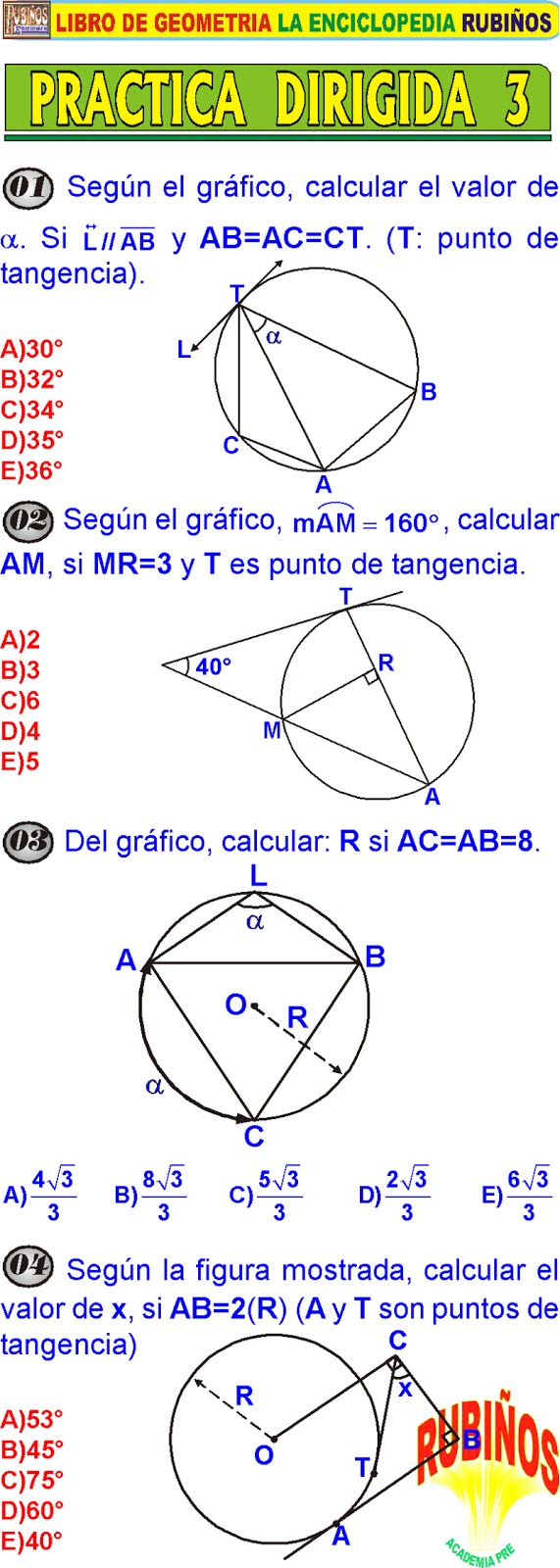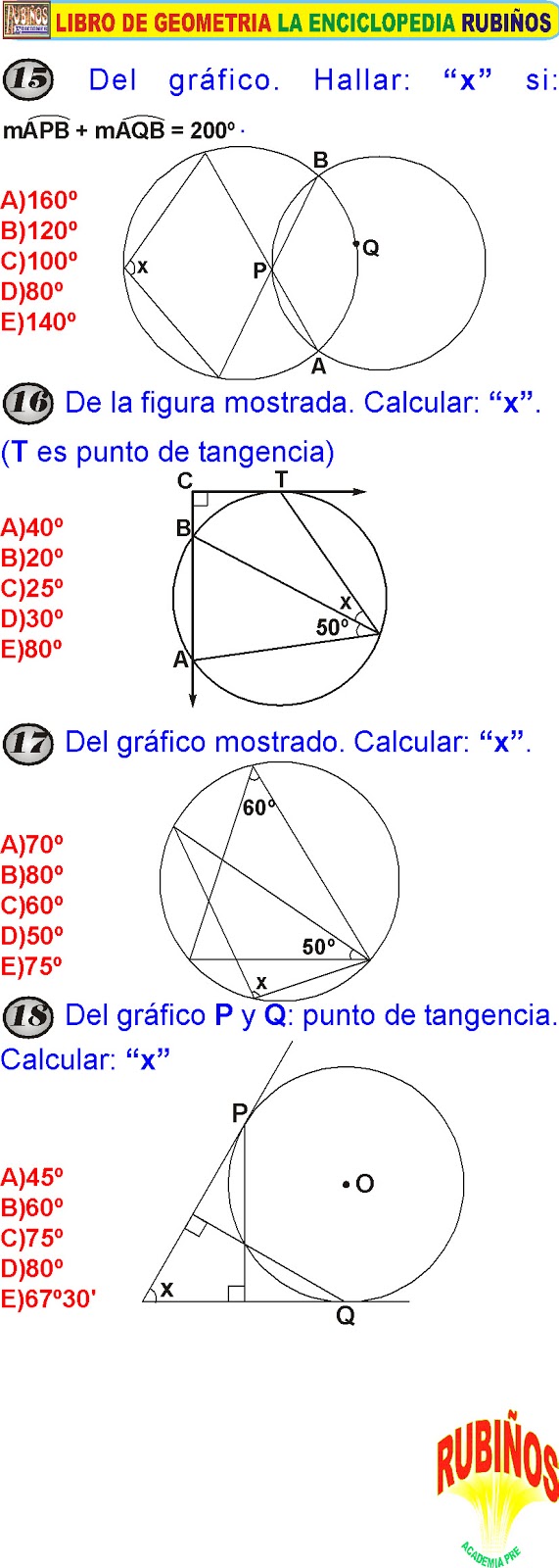 PROBLEMAS DE CIRCUNFERENCIA CON RESPUESTAS GEOMETRÍA PREUNIVERSITARIA PDF 😈