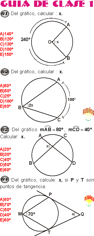 EJERCICIOS DE CIRCUNFERENCIA CON RESPUESTAS GEOMETRÍA PREUNIVERSITARIA PDF 😈