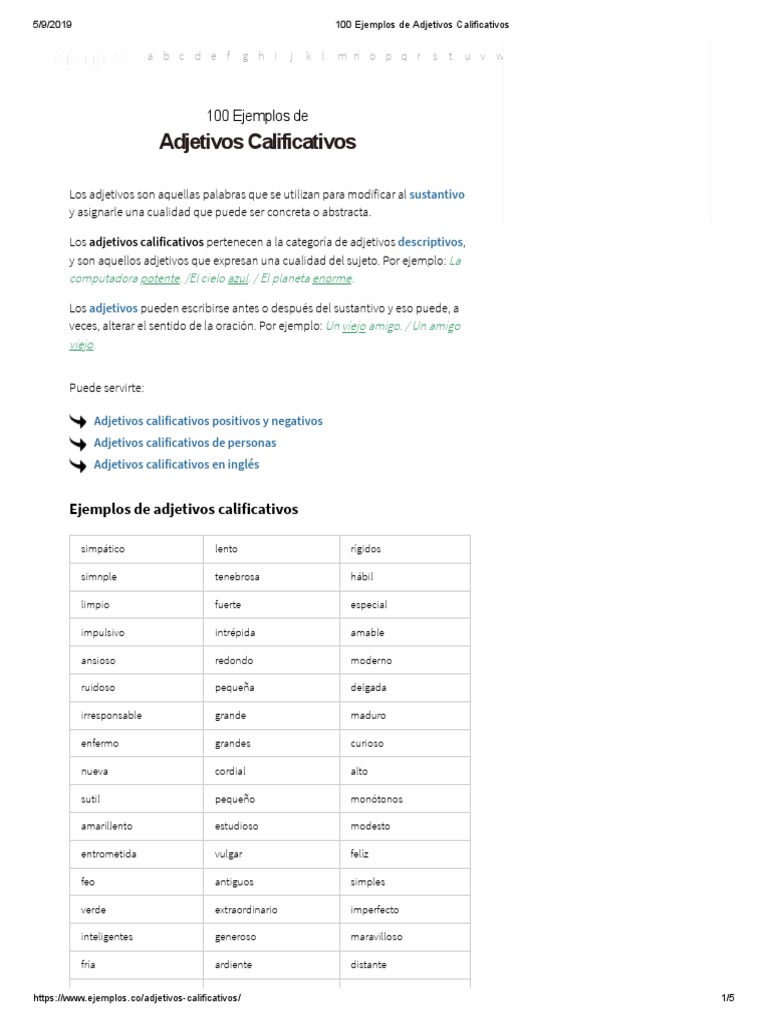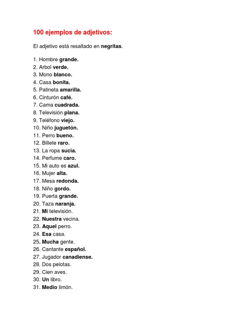100 Ejemplos de Adjetivos Calificativos | Adjetivo ... 😈