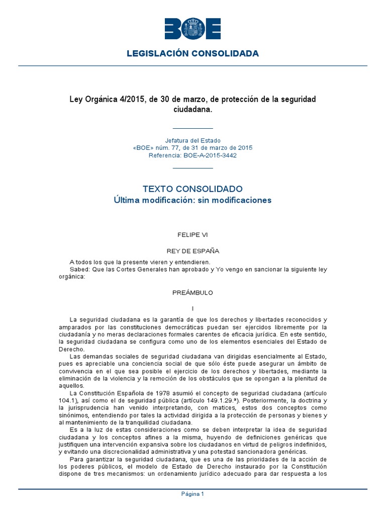 Ley de Seguridad Ciudadana 2015: Ley Orgánica 4/2015, de ... 😈