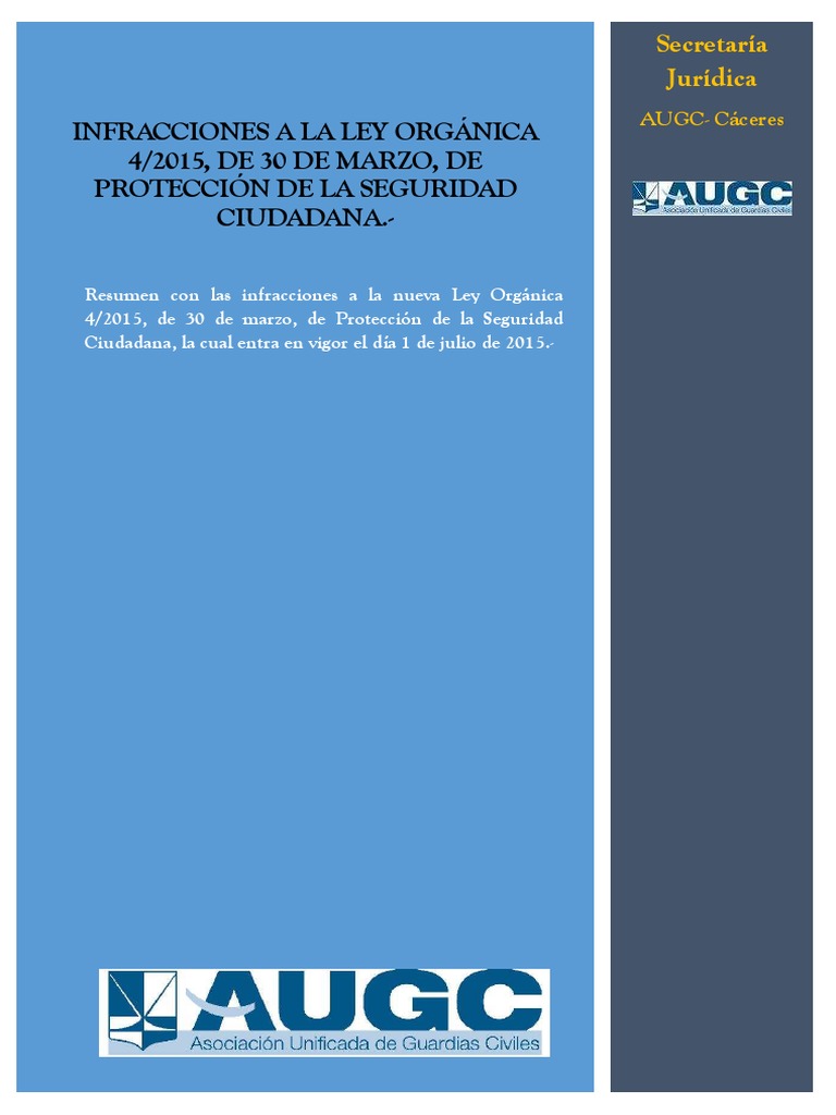 Infracciones LO 4 2015_Seguridad Ciudadana 1 | Derecho ... 😈