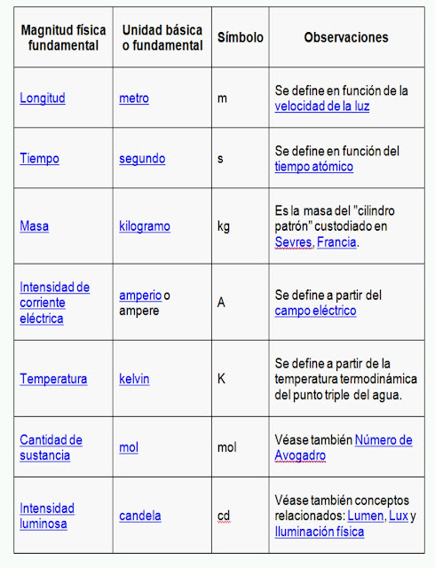 UNA TABLA DE MAGNITUDES DEL SISTEMA INTERNACIONAL . INCLUYE EN LA TABLA ... 😈