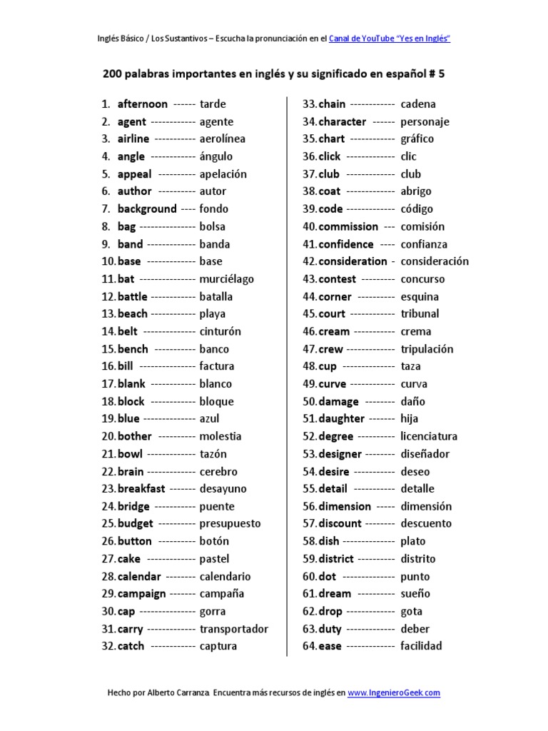 200 palabras importantes en inglés y su significado en español con ... 😈