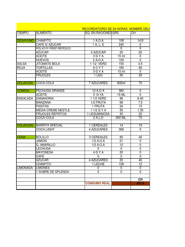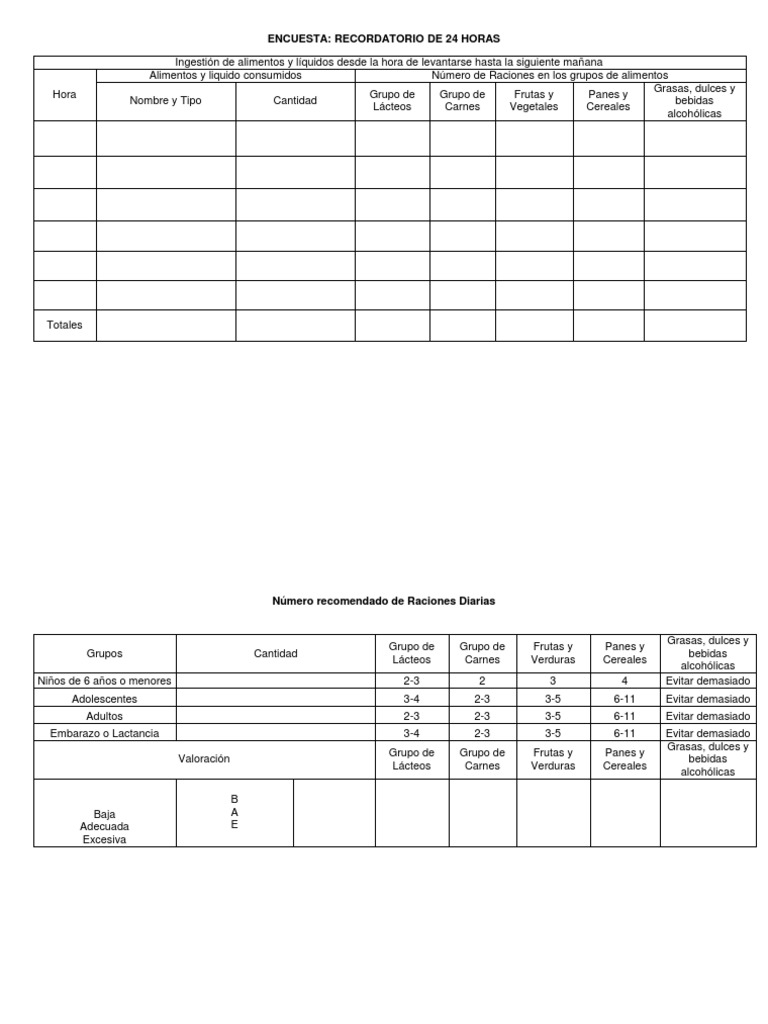 Nutricion Elaborar Un Recordatorio de 24 Horas 😈