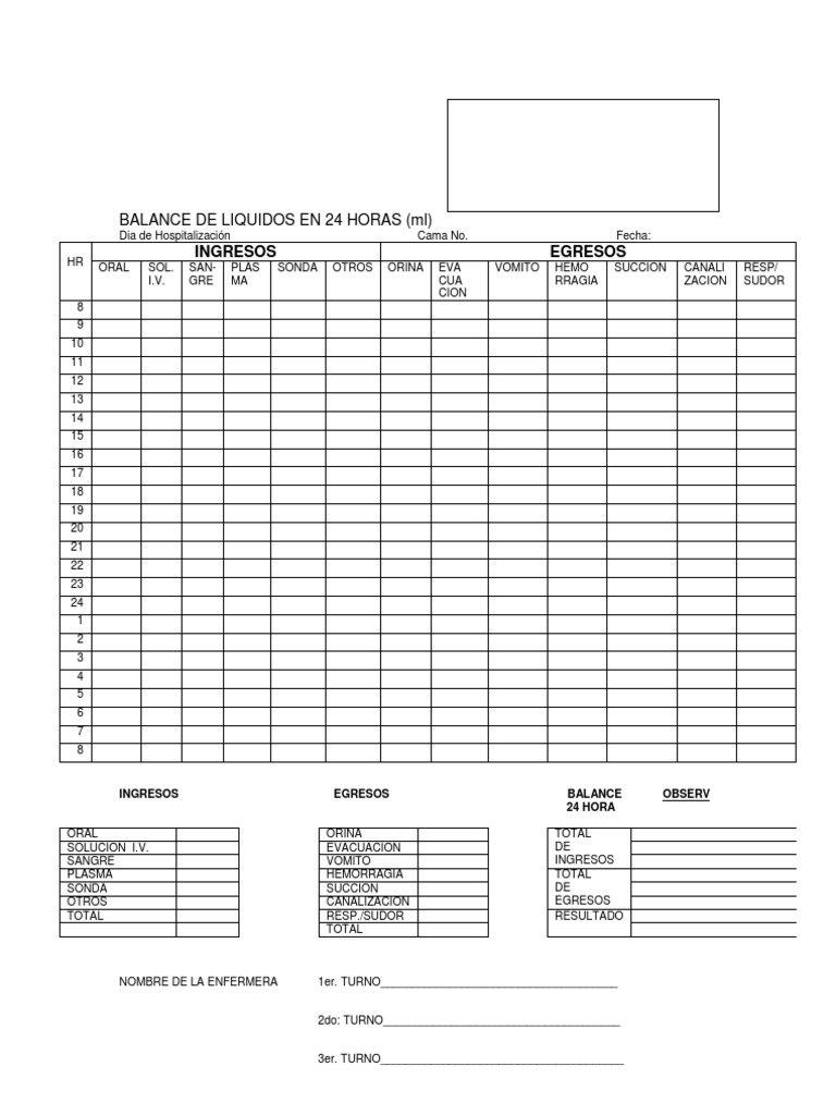 Hoja de Balance de Liquidos en 24 Horas Universidad 😈
