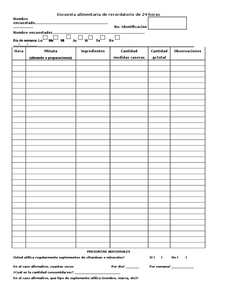 Modelo De Recordatorio De 24 Horas Vários Modelos 😈