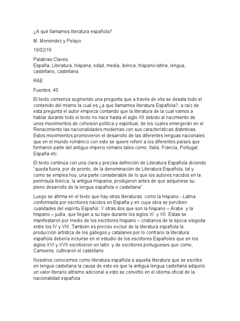 A Qué Llamamos Literatura Española 😈