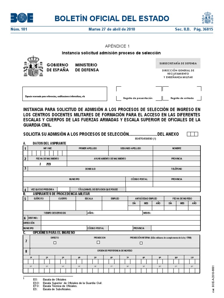 Boletín Oficial Del Estado: Instancia solicitud admisión ... 😈