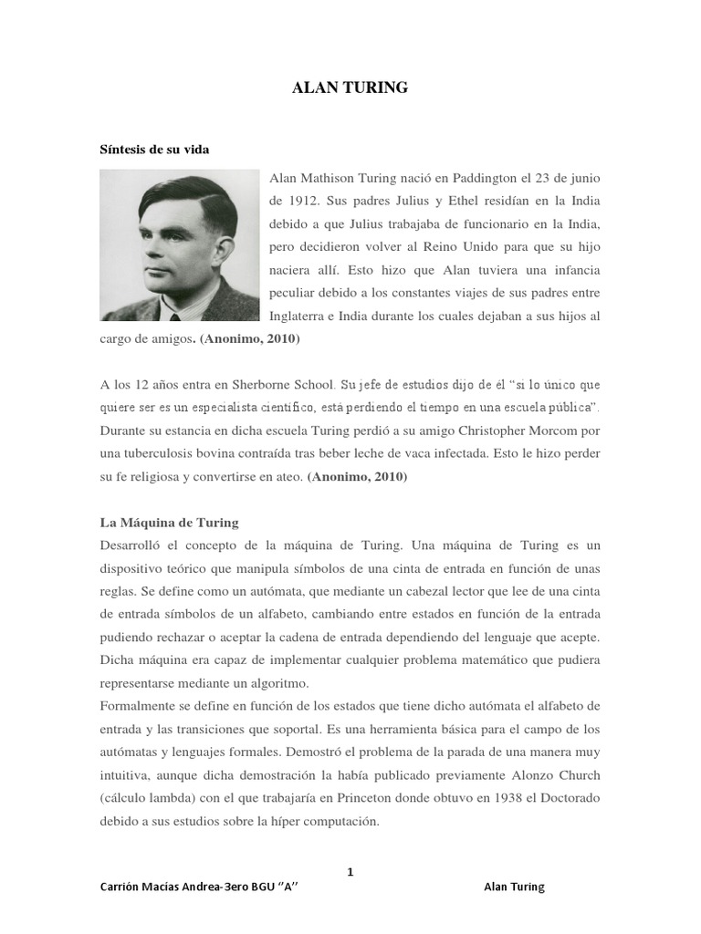 Biografía de Alan Turing.pdf | Alan Turing | Ciencia cognitiva 😈