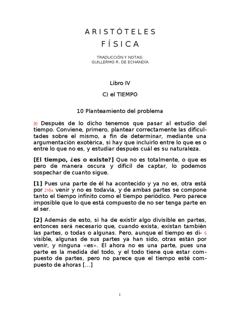 Aristóteles Física El Tiempo | PDF | Hora | Movimiento física 😈