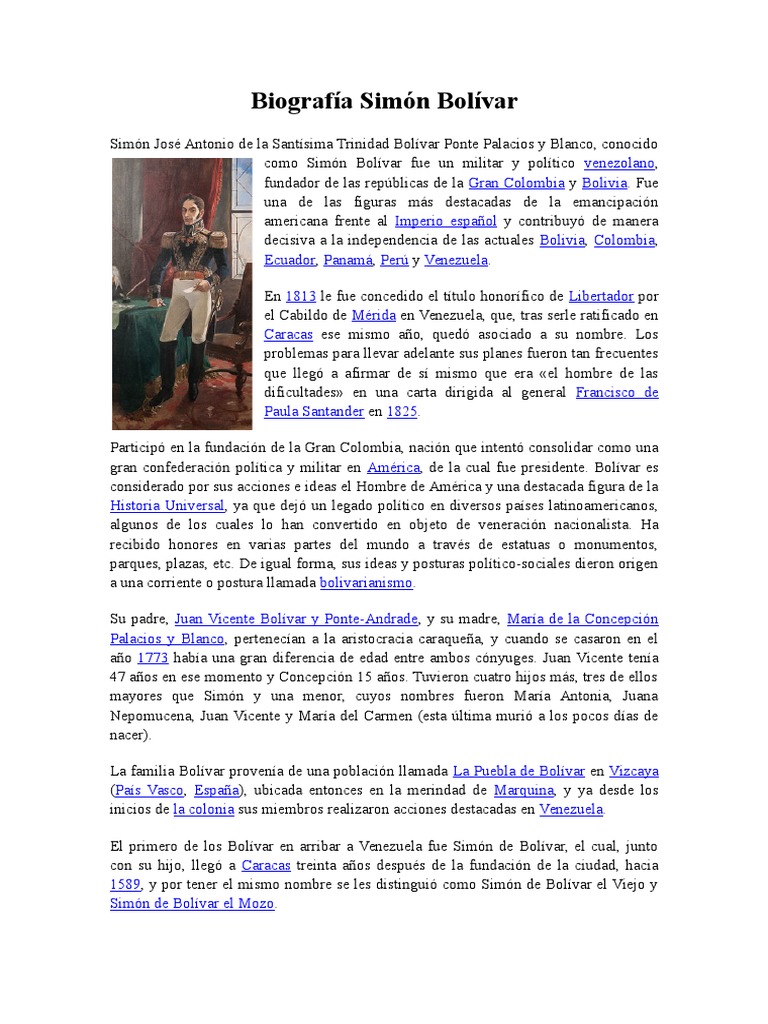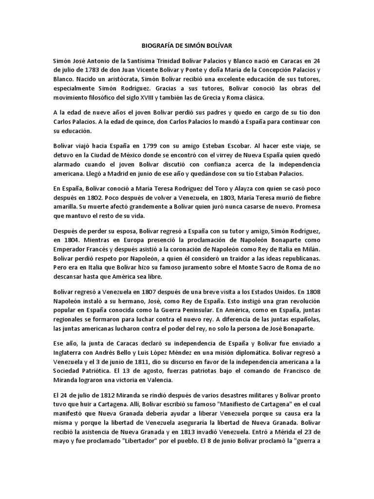 Breve biografía de Simón Bolívar.docx | Disturbios | Historia 😈