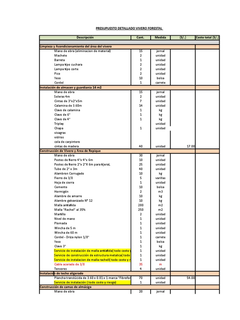VIVERO PRESUPUESTO | Industrias | Horticultura y jardinería | Prueba ... 😈