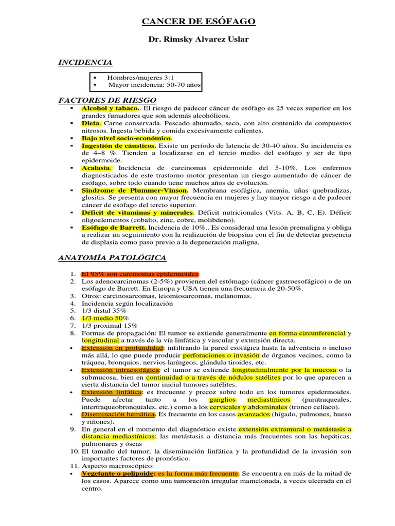 2. CA DE ESOFAGO.docx | Cáncer de esófago | Cáncer 😈
