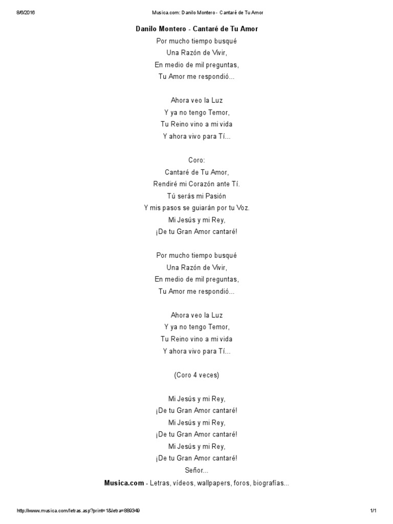 Letra de Cantaré de Tu Amor de Danilo Montero MUSICA 😈