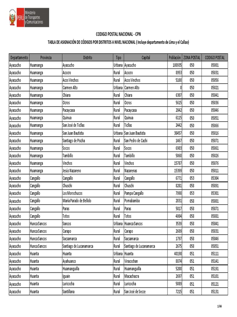 Códigos Postal Por Distritos a Nivel Nacional | Personas 😈