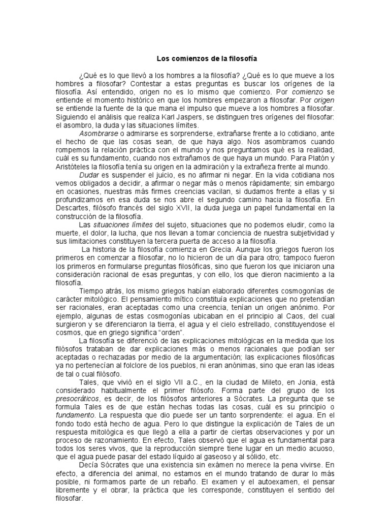 DOC INTRODUCCION A LA FILOSOFIA INICIOS DEL SABER HUMANO ... 😈