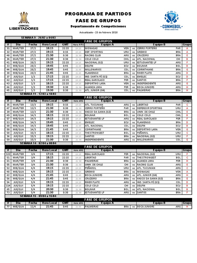 El fixture completo de la Copa Libertadores 2018 Tiempo ... 😈