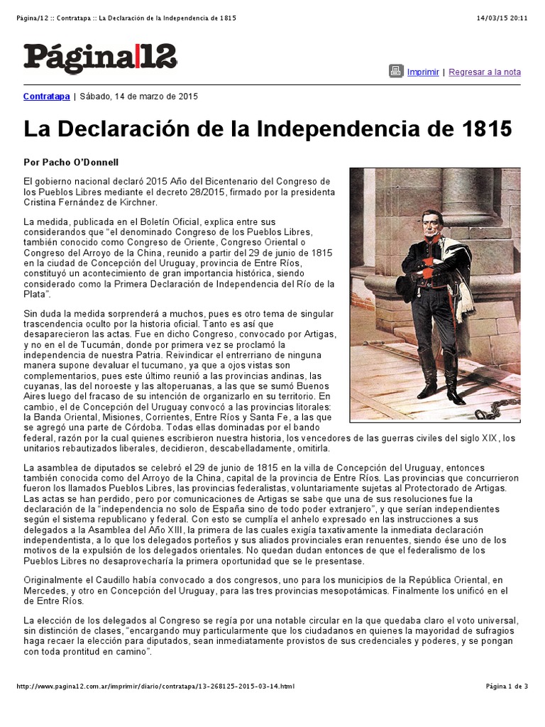 La Declaración de La Independencia de 1815 | Uruguay ... 😈