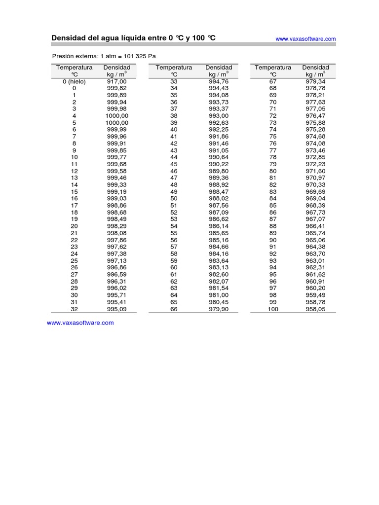 Tabla De Densidad Del Agua Destilada A Diferentes Temperaturas Esta ... 😈