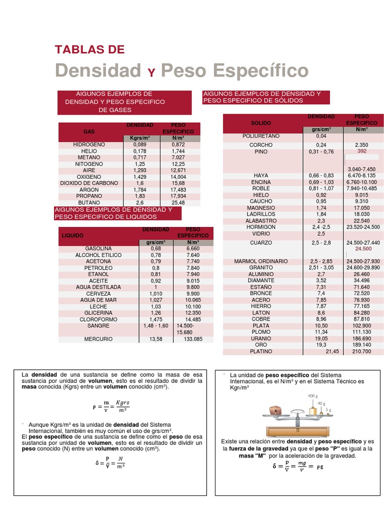 Tabla De Densidades Gcm3 😈