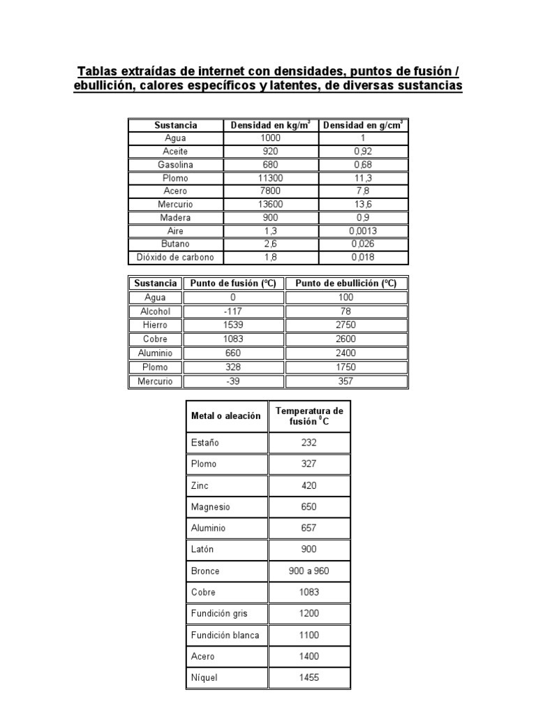tablas de densidades y temperaturas de fusion y ebullucion 😈