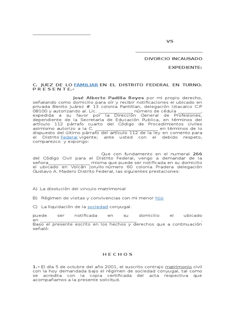 modelo de divorcio incausado | Divorcio | Demanda judicial 😈