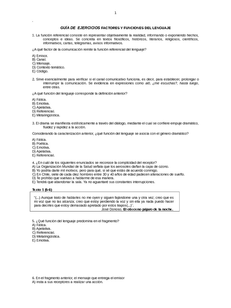 Guía de Ejercicios Factores y Funciones Del Lenguaje | PDF ... 😈