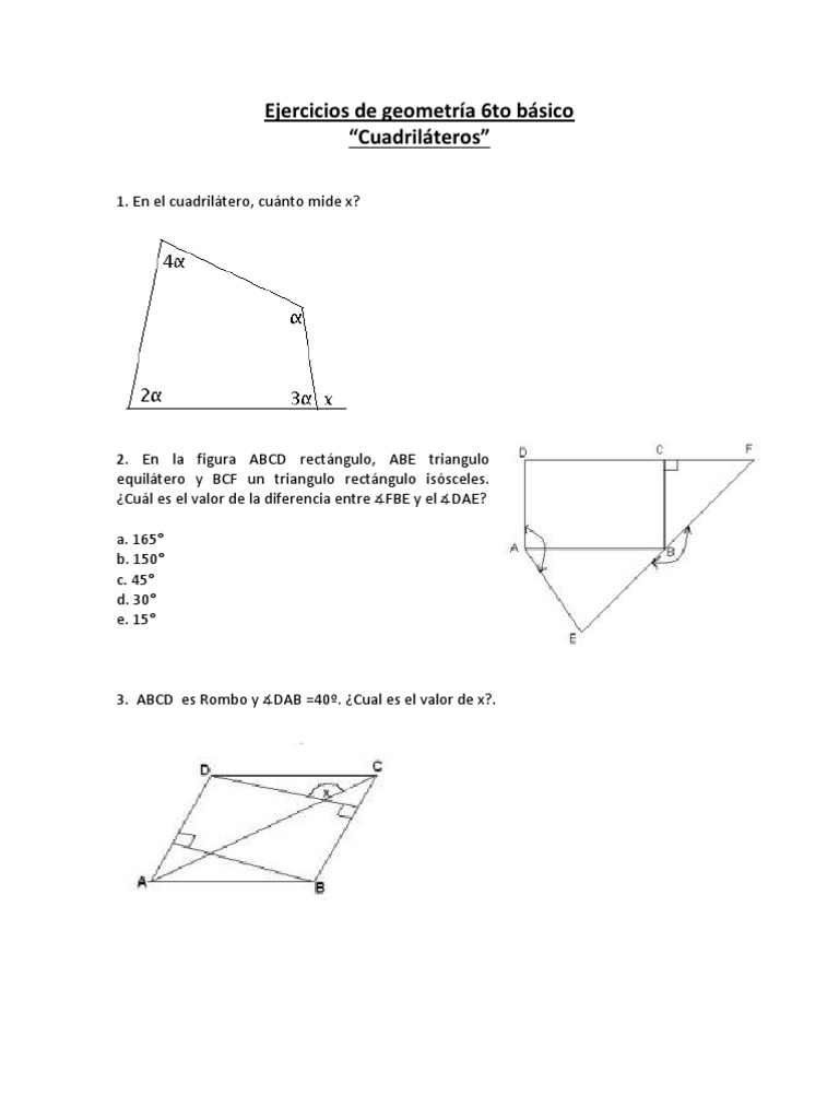 Ejercicios geometría, cuadrilateros . 6to básico 😈