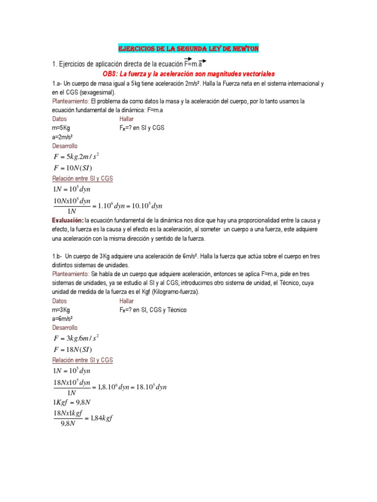 Segunda Ley De Newton Ejercicios Resueltos Pdf Ley Compartir 😈