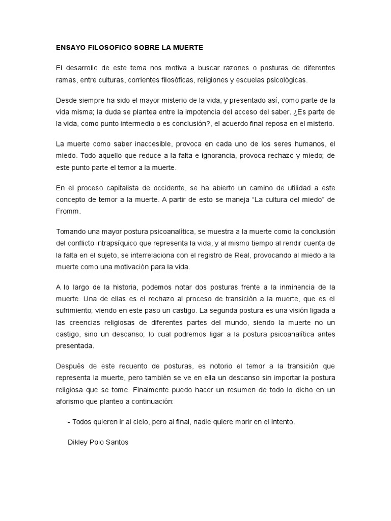 Ensayo Filosofico Sobre La Muerte | Muerte | Temor 😈