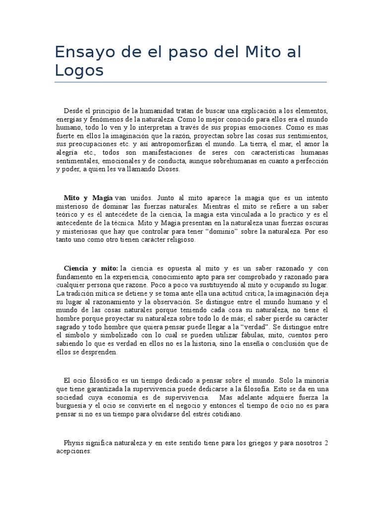 Ensayo de El Paso Del Mito Al Logos | Conocimiento | Ciencia 😈