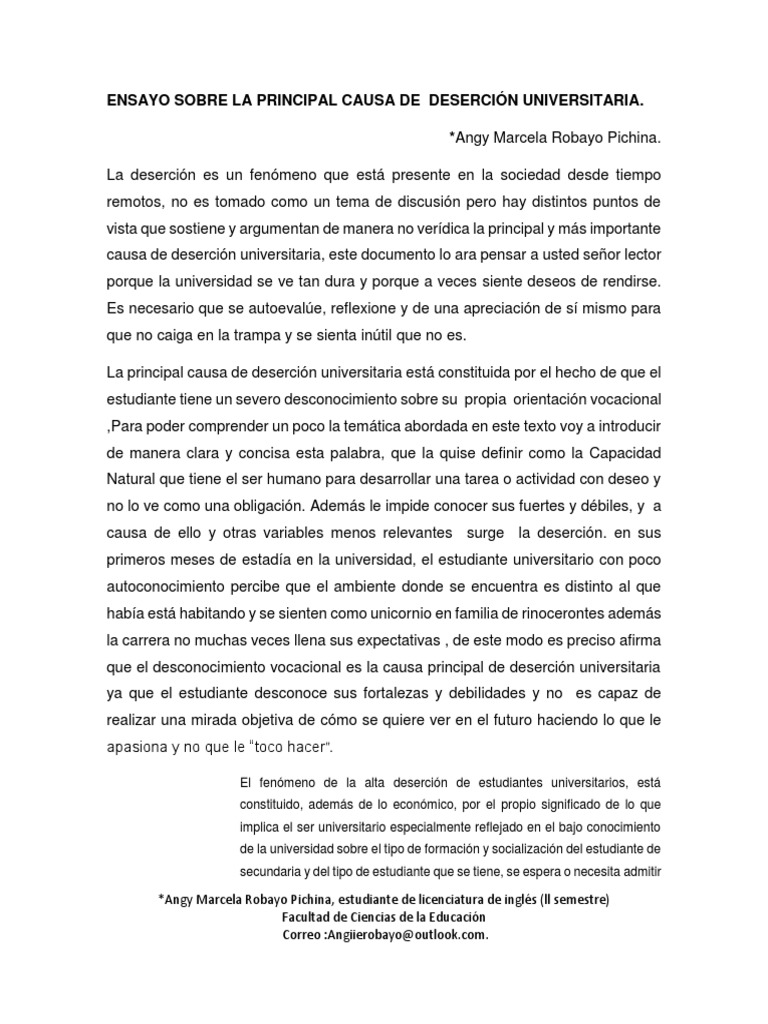 Ensayo Sobre La Principal Causa de Deserción Universitaria ... 😈