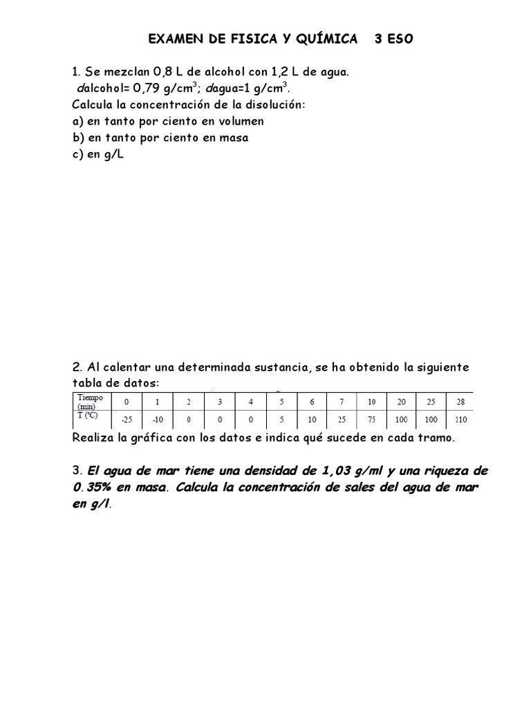 Examen de Fisica y Química 3 Eso | Solubilidad | Dom ... 😈