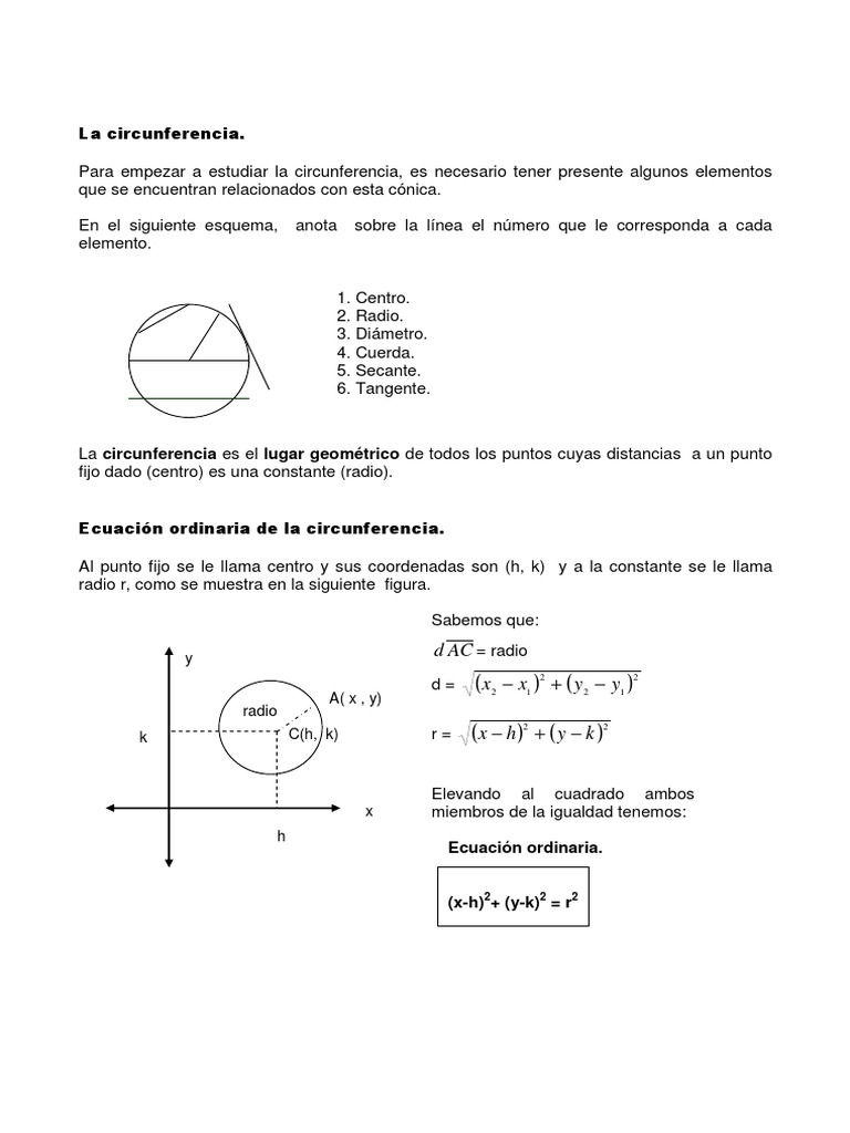 LA CIRCUNFERENCIA EN GEOMETRIA ANALÍTICA BÁSICA FÓRMULAS Y EJEMPLOS pdf 😈