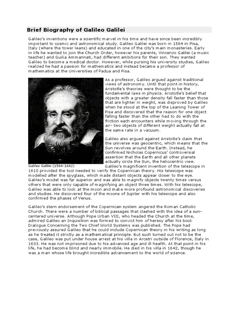 Galileo Galilei Biography Worksheet Free Printables for Science for ... 😈