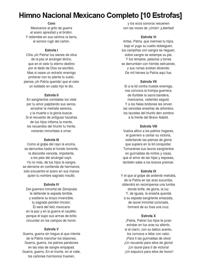 Himno Nacional Mexicano Letra Himno Nacional Mexicano Pdf Stephen ... 😈