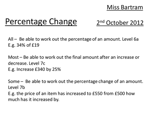 Percentage change by danniebear Teaching Resources Tes 😈