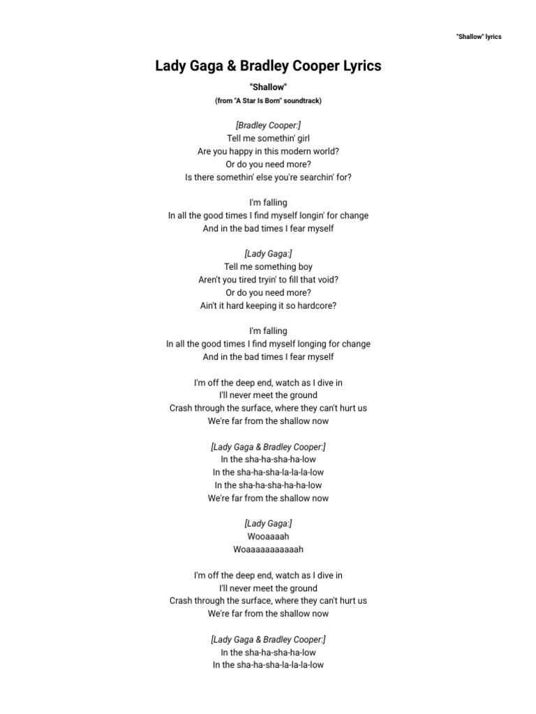 Song Lyrics To Shallow Lyrics Collection 😈