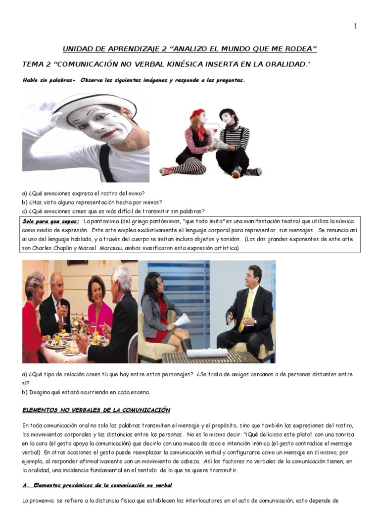 Pautas y Técnicas de la Comunicación.: Tarea N°2: Comunicación No Verbal. 😈