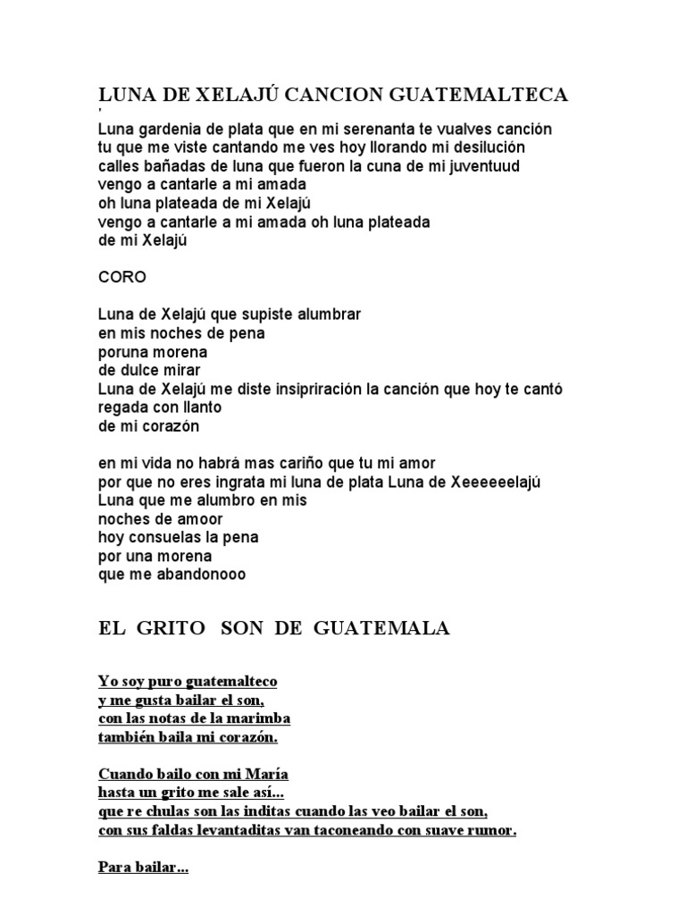 LETRAS DE ALGUNAS CANCIONES GUATEMALTECAS.docx | Naturaleza ... 😈