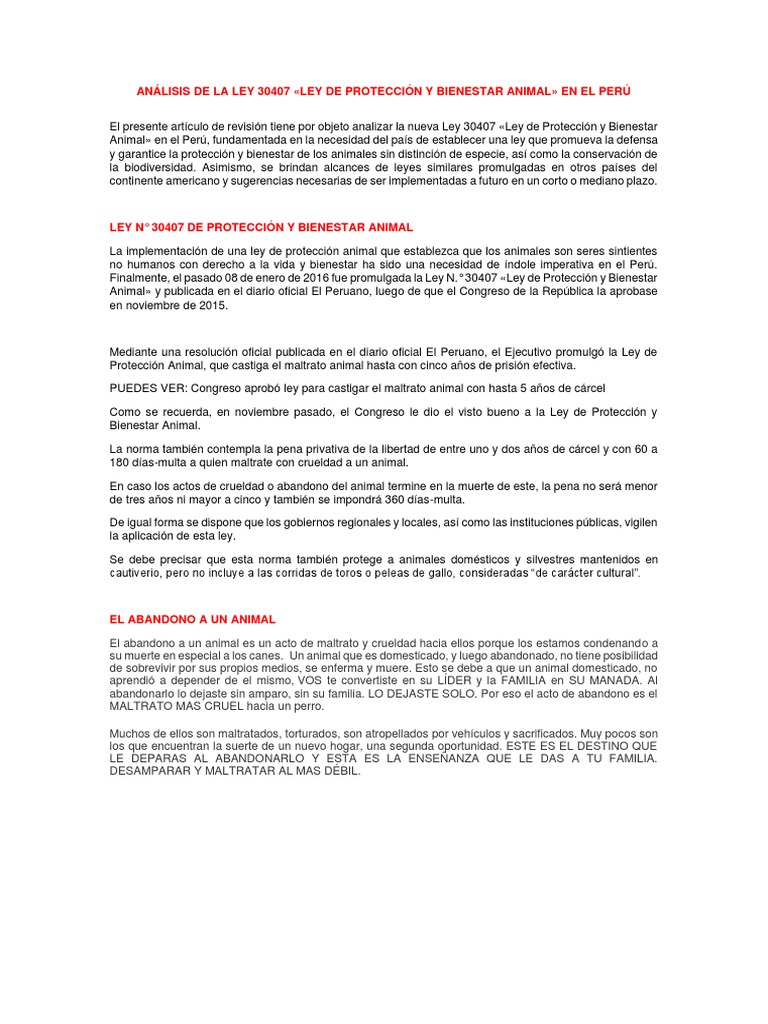Análisis De La Ley 30407 «Ley De Protección Y Bienestar Animal» En El ... 😈