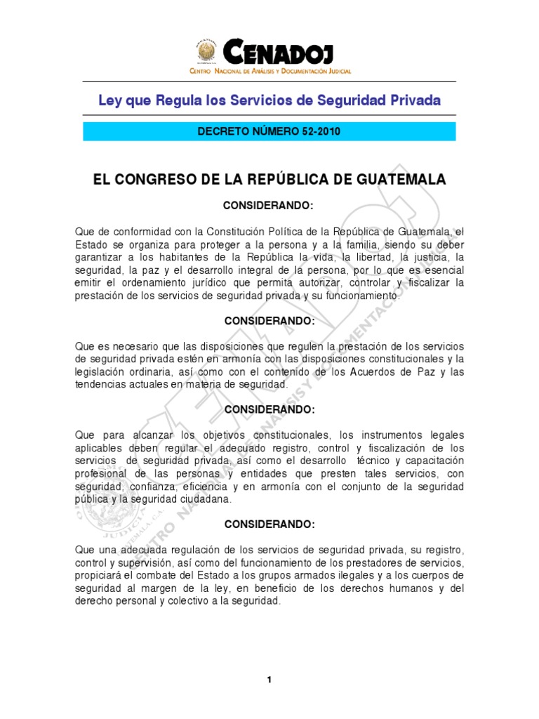 Decreto 52 2010 ley que regula los servicios de seguridad ... 😈