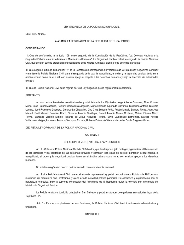 Ley Organica de La PNC El Salvador | Policía | Oficial ... 😈