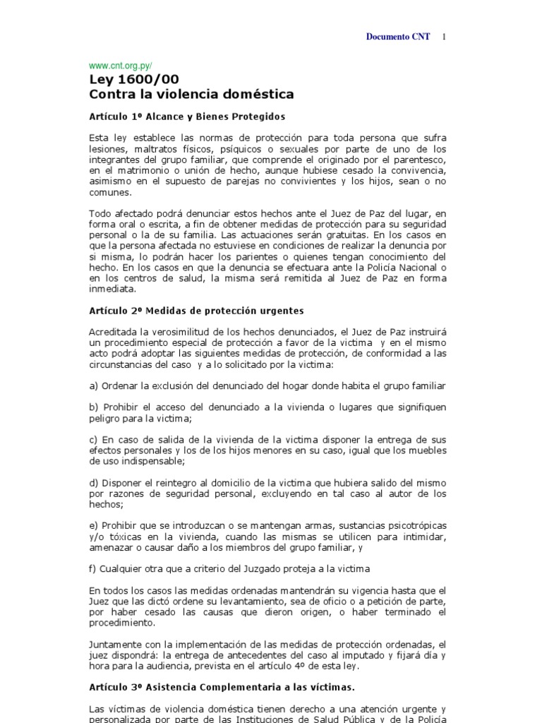 Ley 1600 Del 00 Contra La Violencia Domestica | Adopción ... 😈