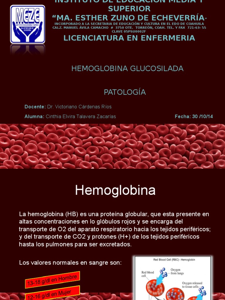 Hemoglobina Glucosilada Cinthia Talavera 5a | Hemoglobina ... 😈