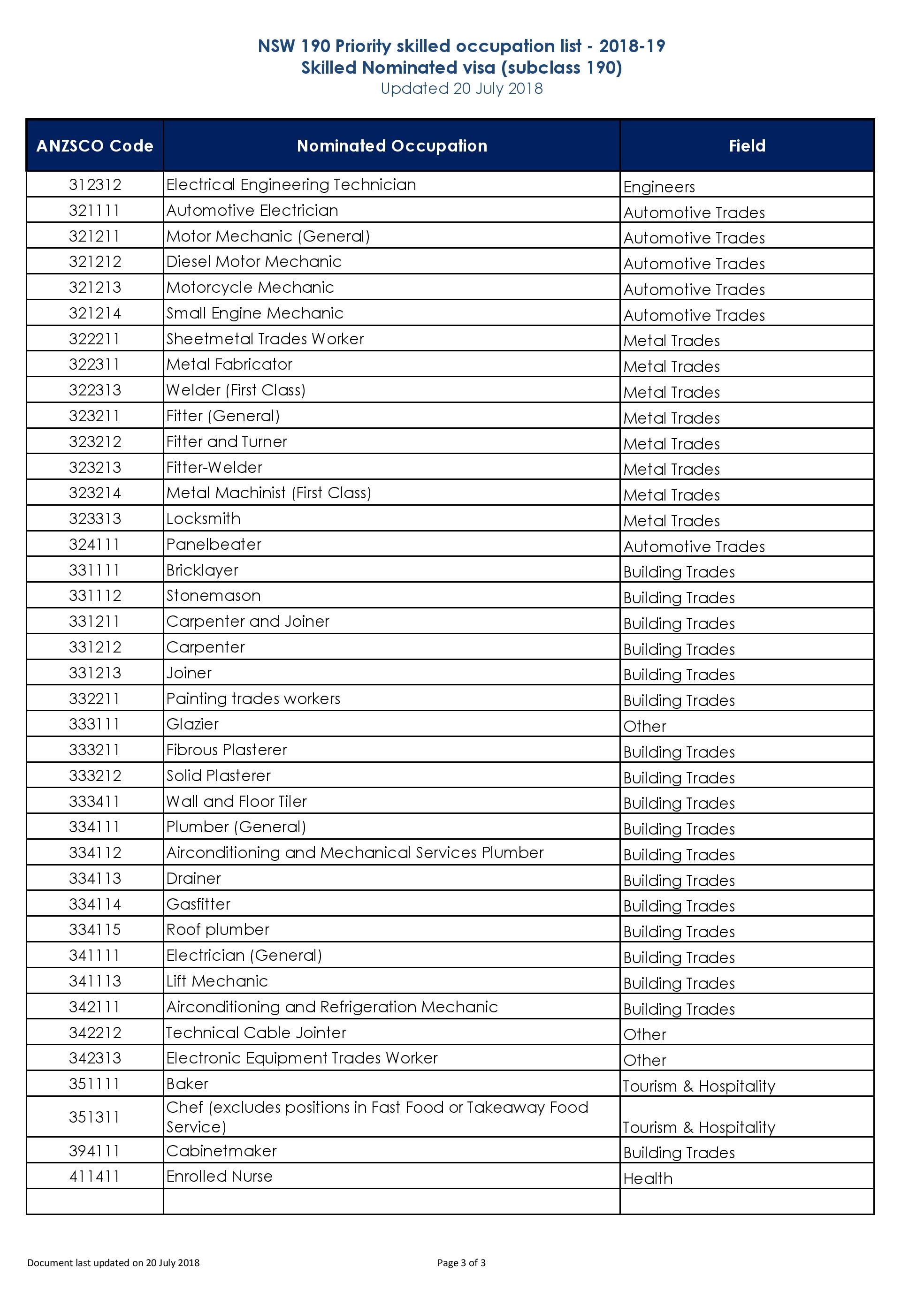 Skilled Occupation Lists for Skilled Migration 2016 2017 😈