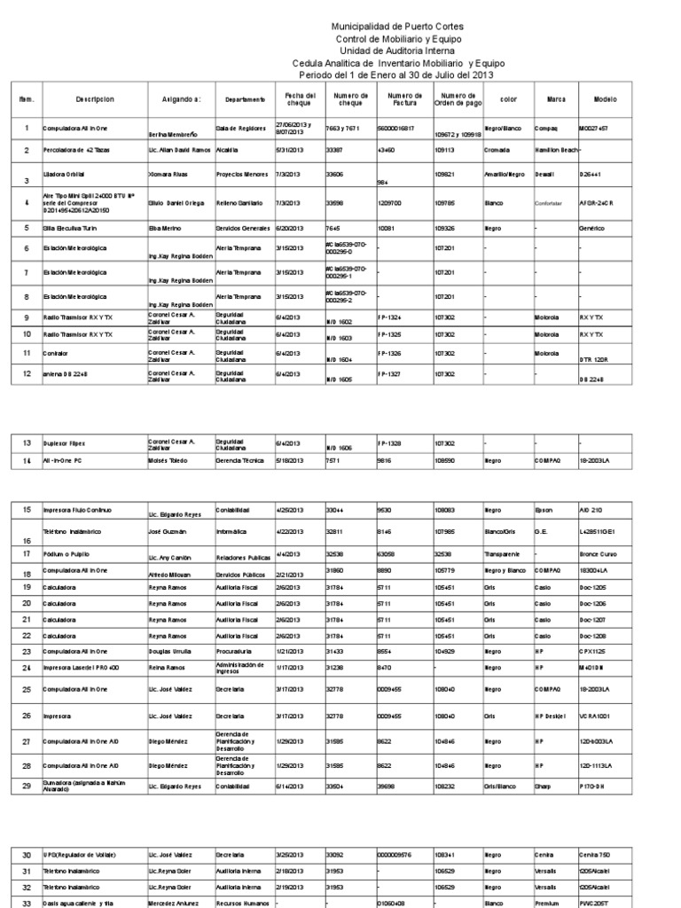 Cedula Analitica de Inventario Mobiliario y Equipo | Equipo de oficina ... 😈