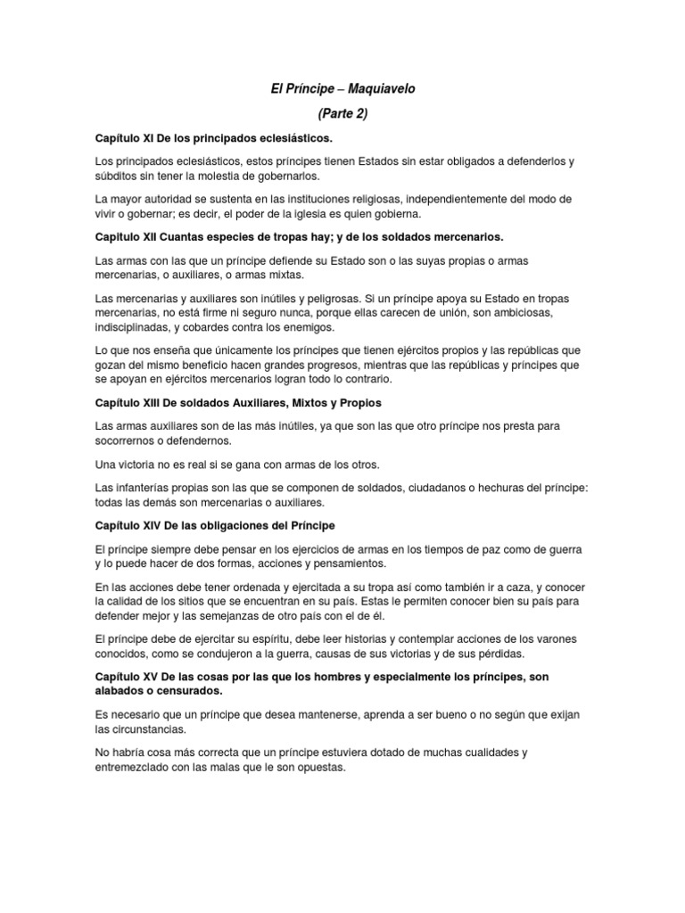 Maquiavelo El Principe Resumen Capitulos